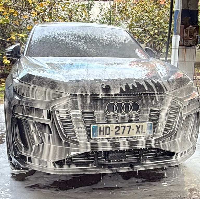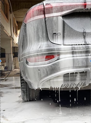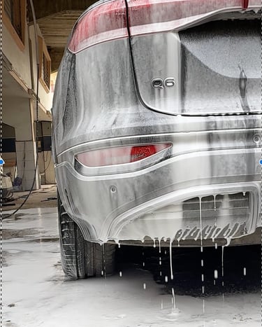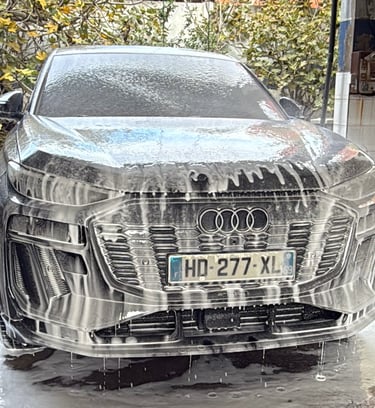 Notre processus de detailing débute par un nettoyage soigné des jantes, traitées avec le décontaminant ferreux de notre partenaire KENOTEK pour dissoudre la poussière de frein, nous passons ensuite à La carrosserie, enveloppée d’une mousse dense au canon, permettant un pré-lavage sans contact.